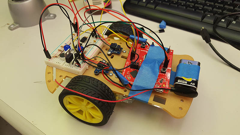 This car is operated using voice commands. A PI loop is used to keep the car on track. For voice recognition, sound bits are converted into a 100-dimensional vector. The command with the smallest euclidian distance to the sound sample is chosen as the operation. PCA is implemented to reduce the dimensionality of the data. This makes the calculations possible on the small board.